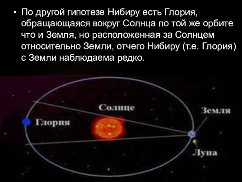 Слайд 25По другой гипотезе Нибиру есть Глория, обращающаяся вокруг Солнца по той