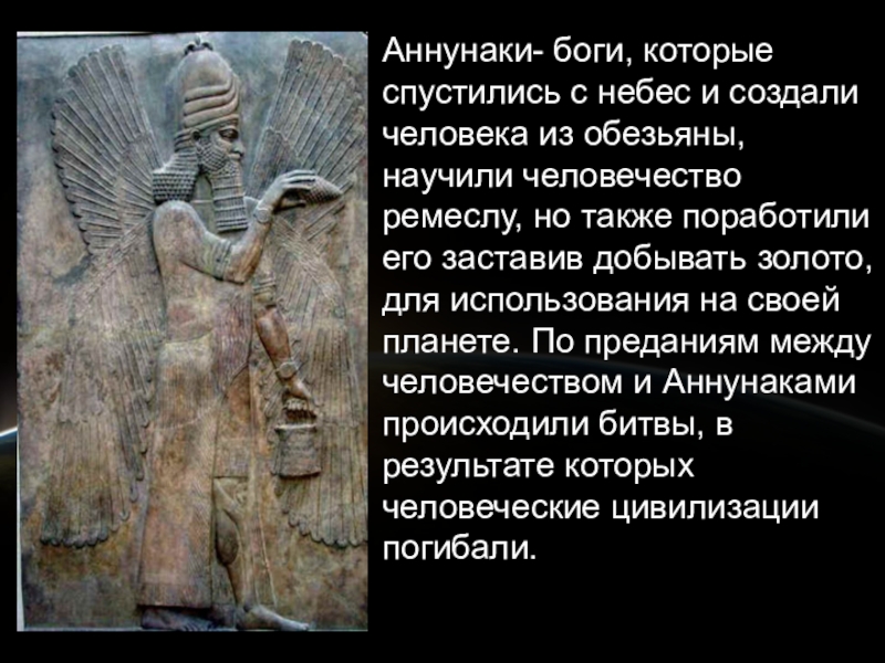 Слайд 21Аннунаки- боги, которые спустились с небес и создали человека из обезьяны,