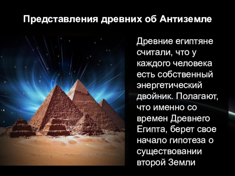 собственный энергетический двойник. Полагают, что именно со времен Древнего Египта, берет свое начало гипотеза о существовании второй Земли