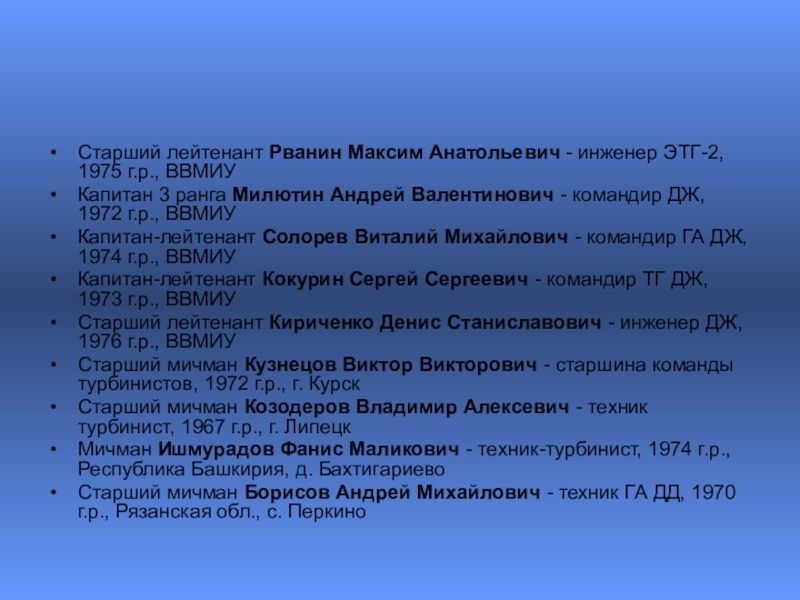 Слайд 18Старший лейтенант Кузнецов Виталий Евгеньевич - инженер ЭТГ-1, 1976 г.р., ВВМИУ