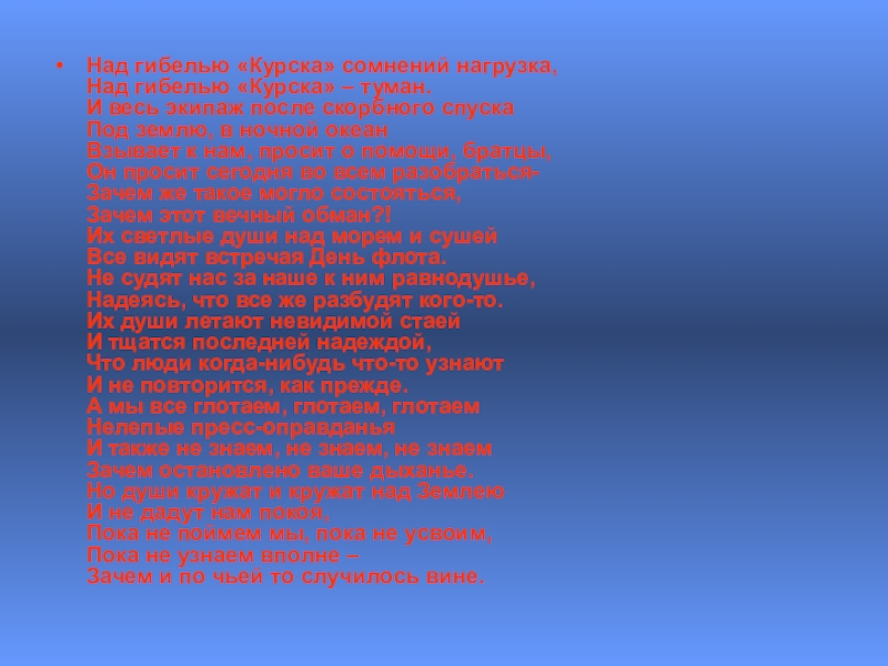 Слайд 36Над гибелью «Курска» сомнений нагрузка,