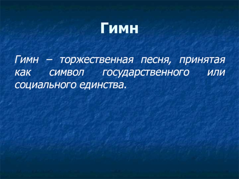 Гимн – торжественная песня, принятая как символ государственного или социального