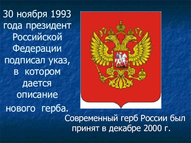 Слайд 2130 ноября 1993 года президент Российской Федерации подписал указ, в котором