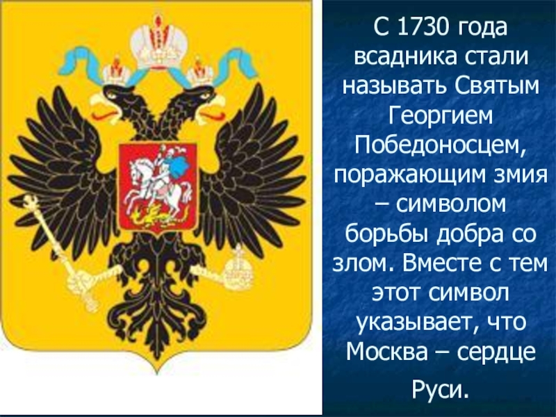 – символом борьбы добра со злом. Вместе с тем этот символ указывает, что Москва – сердце Руси.