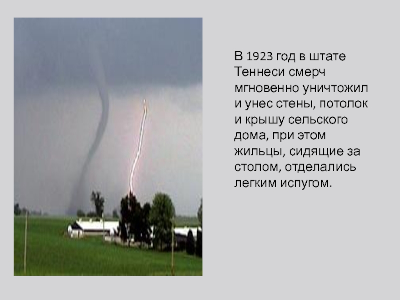 Слайд 13 В 1923 год в штате Теннеси смерч мгновенно