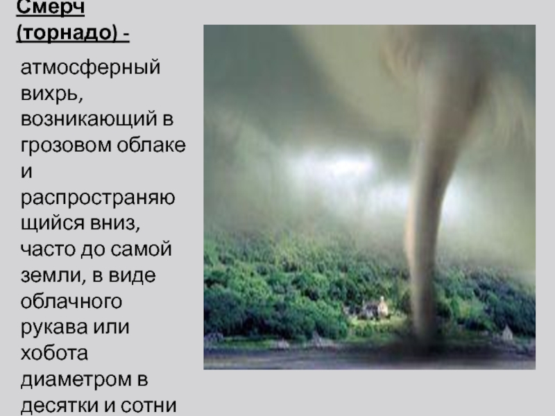 вниз, часто до самой земли, в виде облачного рукава или хобота диаметром в десятки и сотни метров.