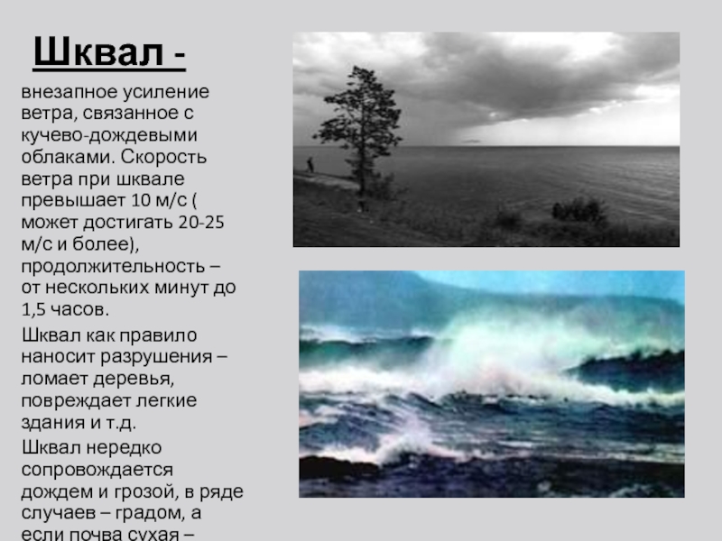 Шквал как правило наносит разрушения – ломает деревья, повреждает легкие здания и т.д.
