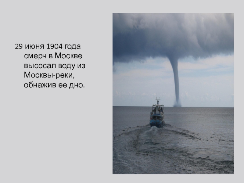 Слайд 1429 июня 1904 года смерч в Москве высосал воду из Москвы-реки,