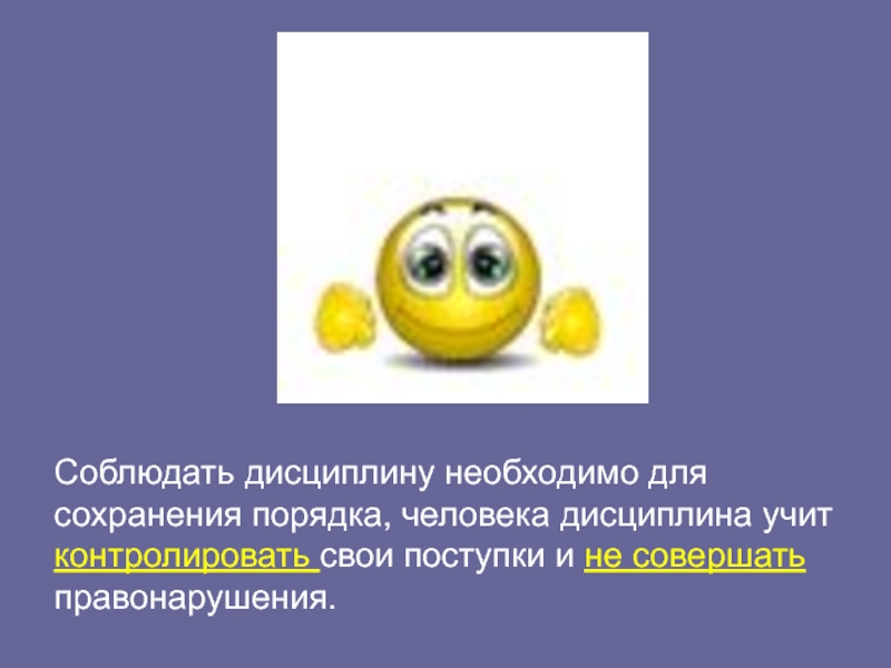 Слайд 10Соблюдать дисциплину необходимо для сохранения порядка, человека дисциплина учит контролировать свои