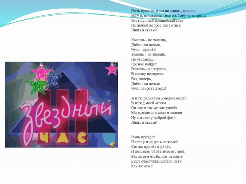 Слайд 18Ночь пришла, а ты не спишь, малыш.
