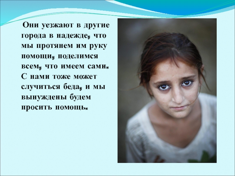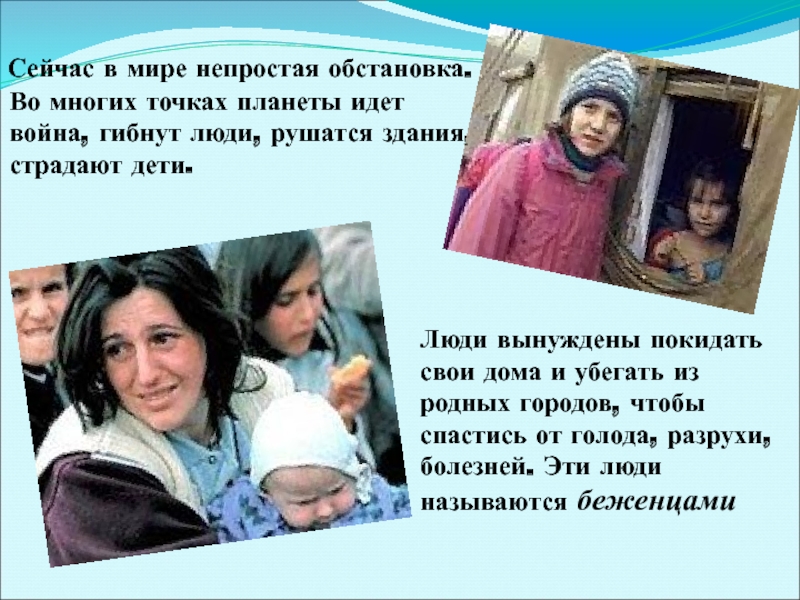 Люди вынуждены покидать свои дома и убегать из родных городов, чтобы спастись от голода, разрухи, болезней. Эти люди называются беженцами
