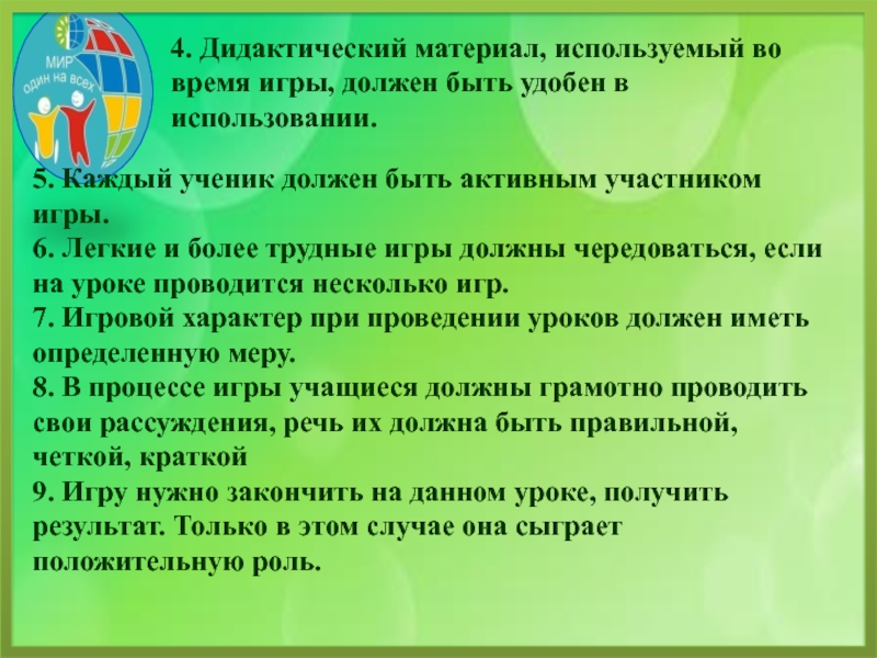 5. Каждый ученик должен быть активным участником игры.