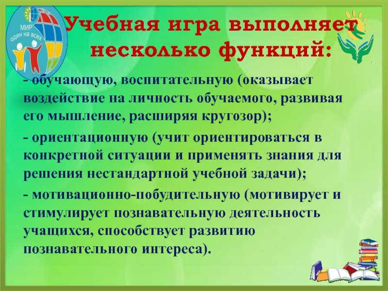 учебная деятельность подчиняется правилам игры