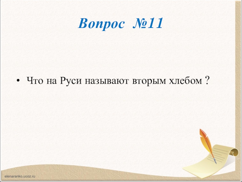 Вопрос №11 Что на Руси называют вторым хлебом ?