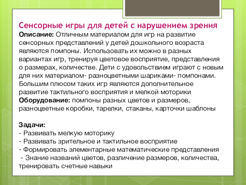 Слайд 2Сенсорные игры для детей с нарушением зрения