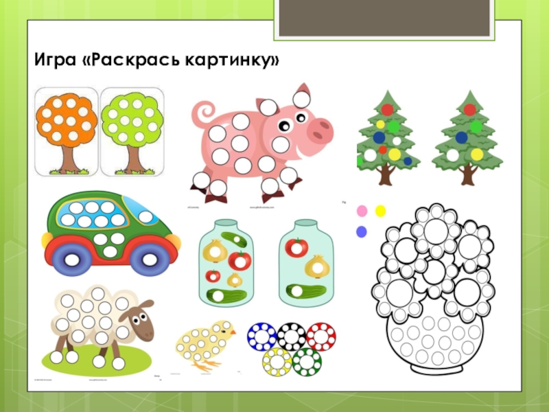 - Знание названий цветов, различение размеров, количества, тренировать счетные навыки