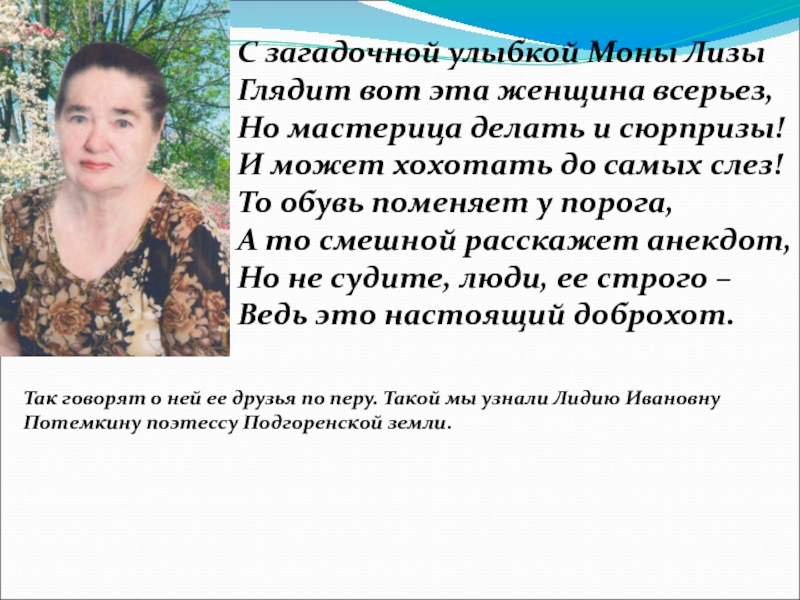Так говорят о ней ее друзья по перу. Такой мы узнали Лидию Ивановну