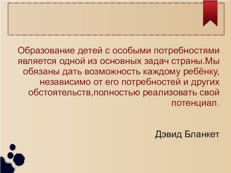 обязаны дать возможность каждому ребёнку,независимо от его потребностей и других обстоятельств,полностью реализовать свой потенциал.