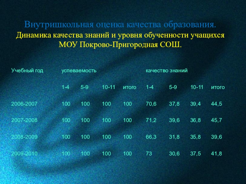 Слайд 39Внутришкольная оценка качества образования. Динамика качества знаний и уровня обученности учащихся