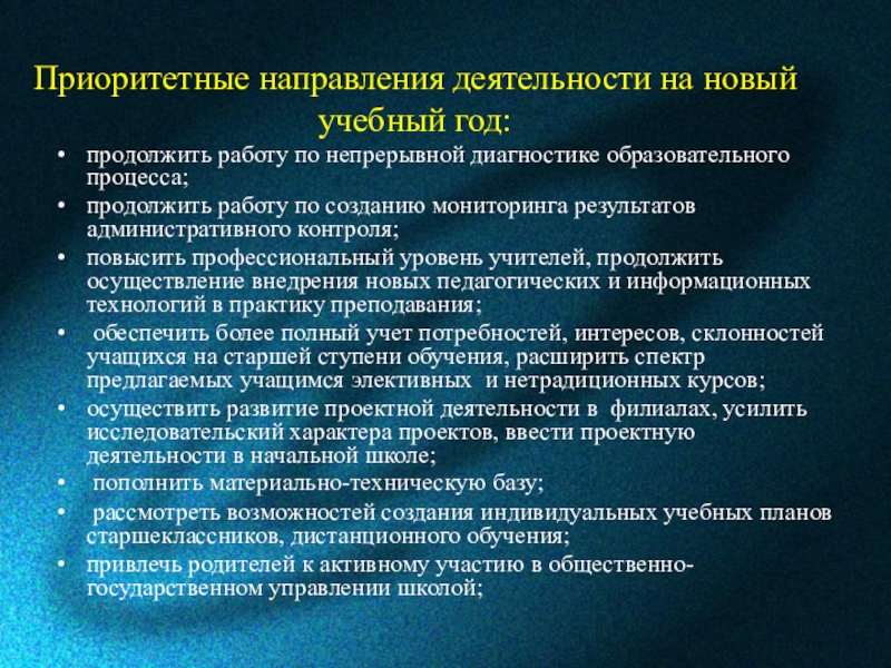 Слайд 46Приоритетные направления деятельности на новый учебный год: