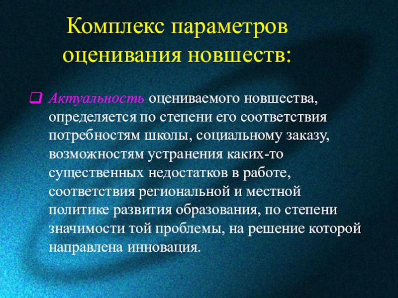 Актуальность оцениваемого новшества, определяется по степени его соответствия