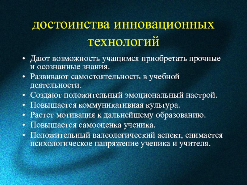 Слайд 17достоинства инновационных технологий