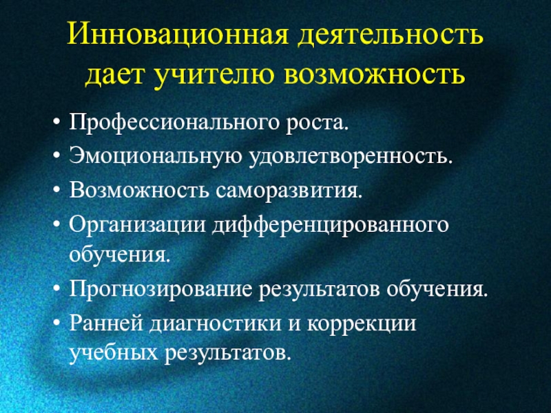 Слайд 18Инновационная деятельность дает учителю возможность