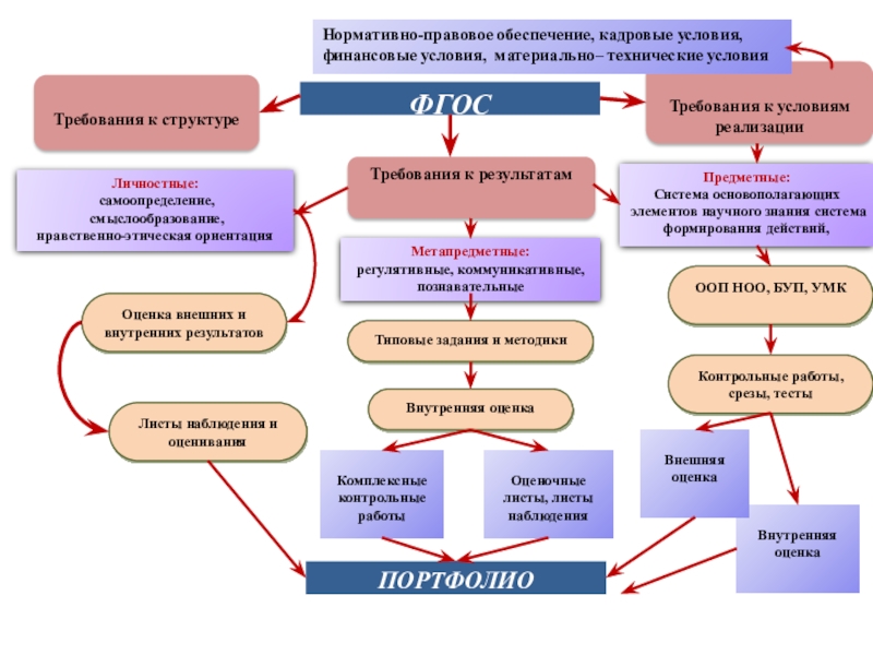 Нормативно-правовое обеспечение, кадровые условия, финансовые условия, материально– технические условия