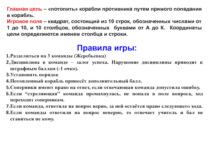 Дисциплина в команде – залог успеха. Нарушение дисциплины приводит к штрафным баллам (-1 очко).