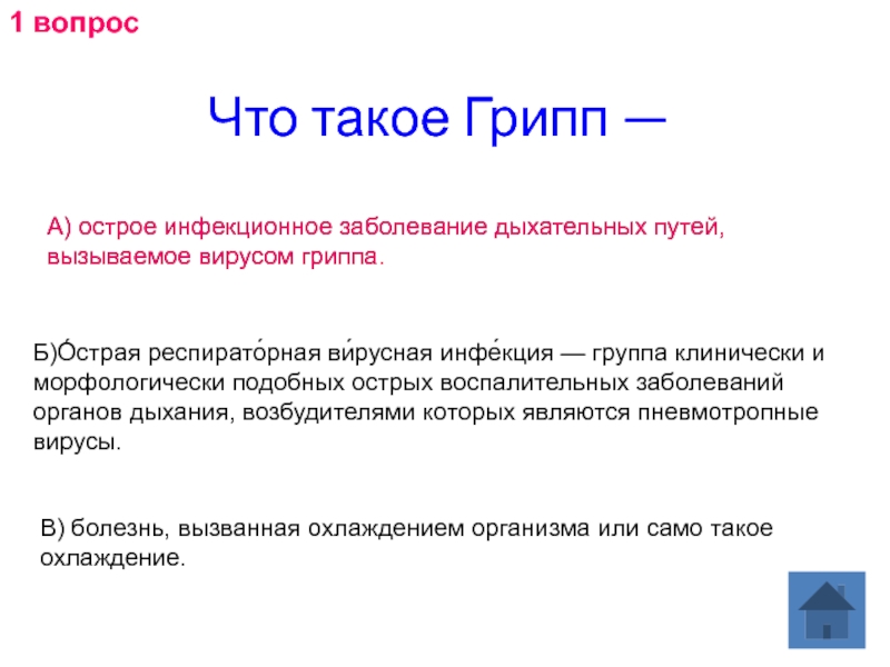А) острое инфекционное заболевание дыхательных путей, вызываемое вирусом гриппа.