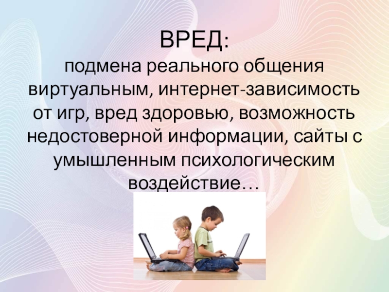 подмена реального общения виртуальным, интернет-зависимость от игр, вред здоровью, возможность недостоверной