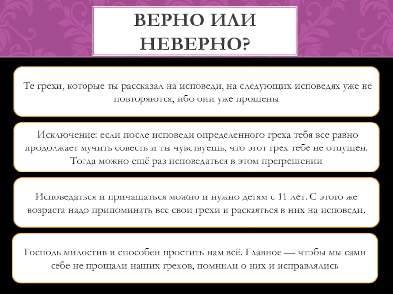Исключение: если после исповеди определенного греха тебя все равно продолжает мучить совесть и ты чувствуешь, что этот грех тебе не отпущен. Тогда можно ещё раз исповедаться в этом прегрешении