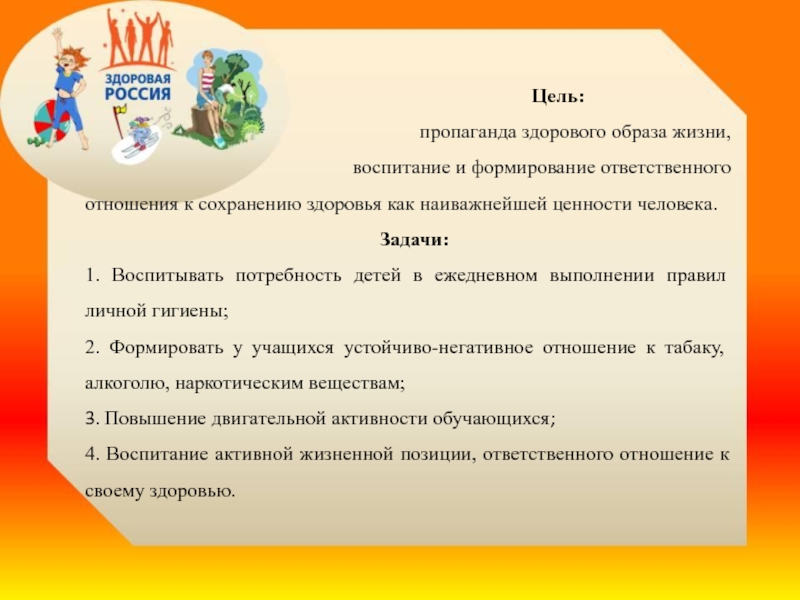 Воспитание правильных представлений о здоровом образе жизни и его важности, а также формирование здорового стереотипа поведения