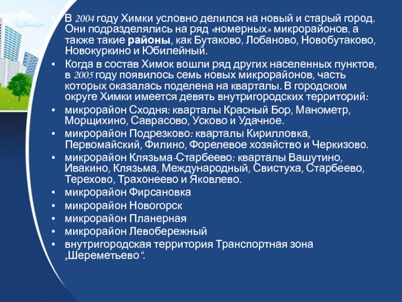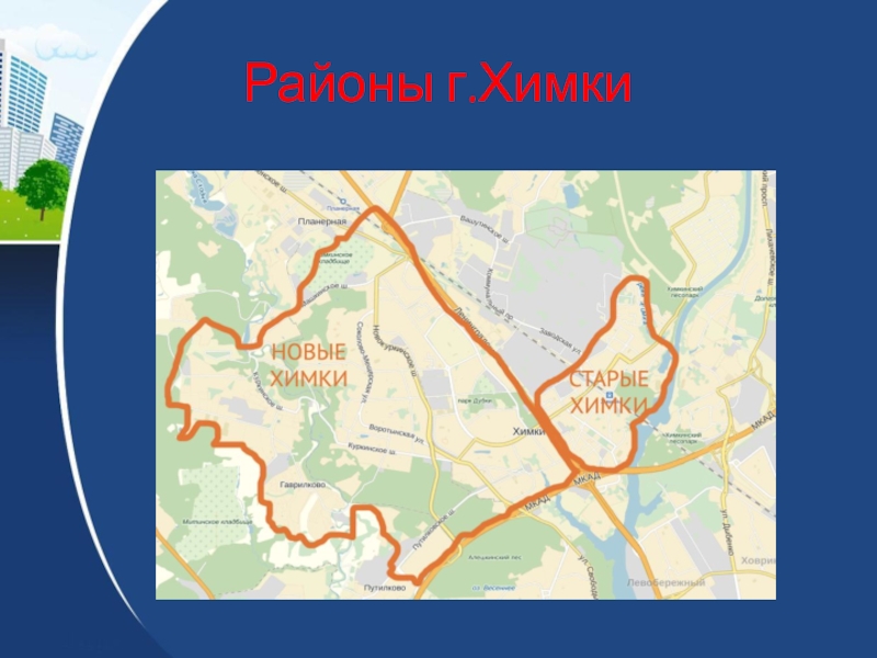 Слайд 38В 2004 году Химки условно делился на новый и старый город.