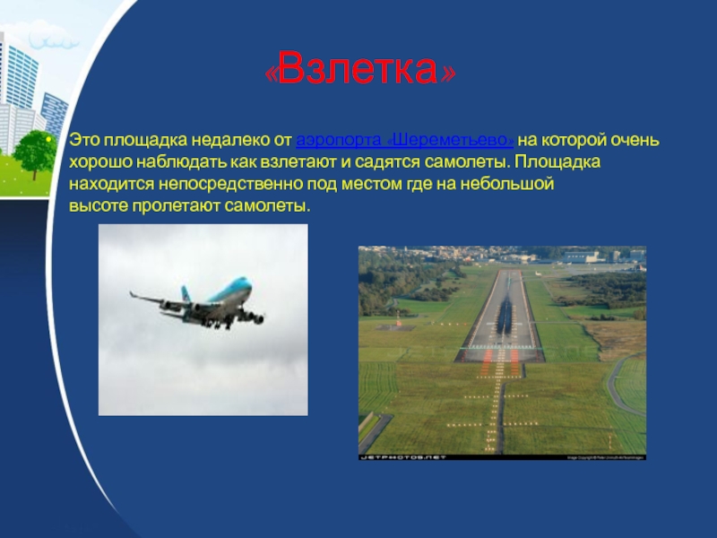 и садятся самолеты. Площадка находится непосредственно под местом где на небольшой высоте пролетают самолеты.
