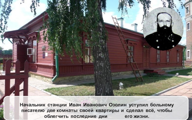 Слайд 9Начальник станции Иван Иванович Озолин уступил больному писателю две комнаты своей