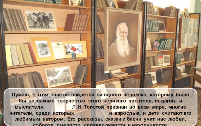 бы незнакомо творчество этого великого писателя, педагога и мыслителя. Л. Н. Толстой признан во всем мире, многие читатели, среди которых и взрослые, и дети считают его любимым автором. Его рассказы, сказки и басни учат нас любви, доброте, смелости, справедливости и находчивости.