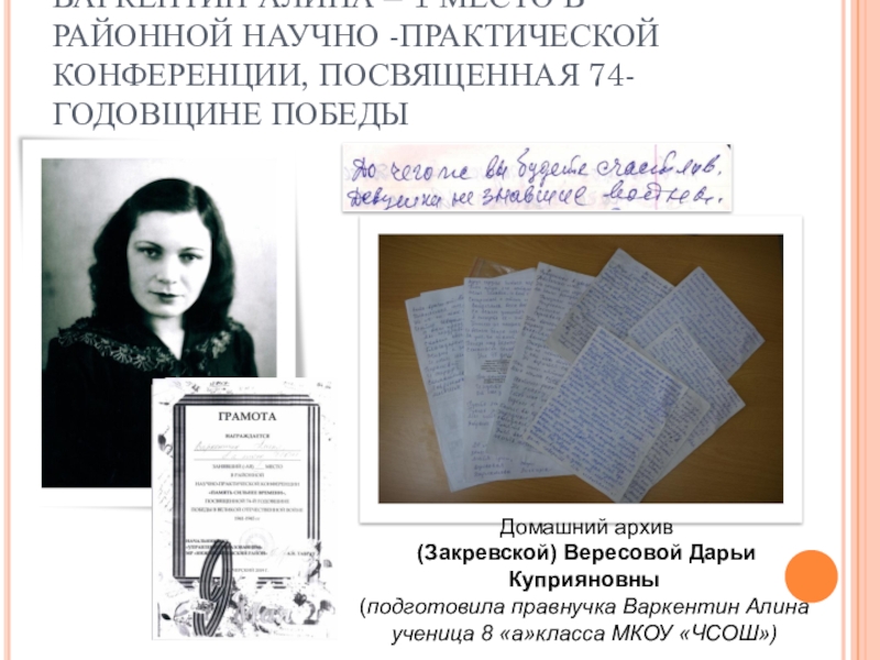 (подготовила правнучка Варкентин Алина ученица 8 «а»класса МКОУ «ЧСОШ»)