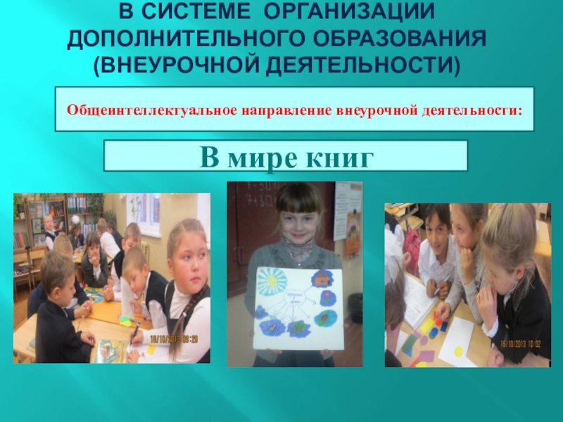 В системе организации дополнительного образования (внеурочной деятельности) Общеинтеллектуальное направление внеурочной деятельности:В мире книг