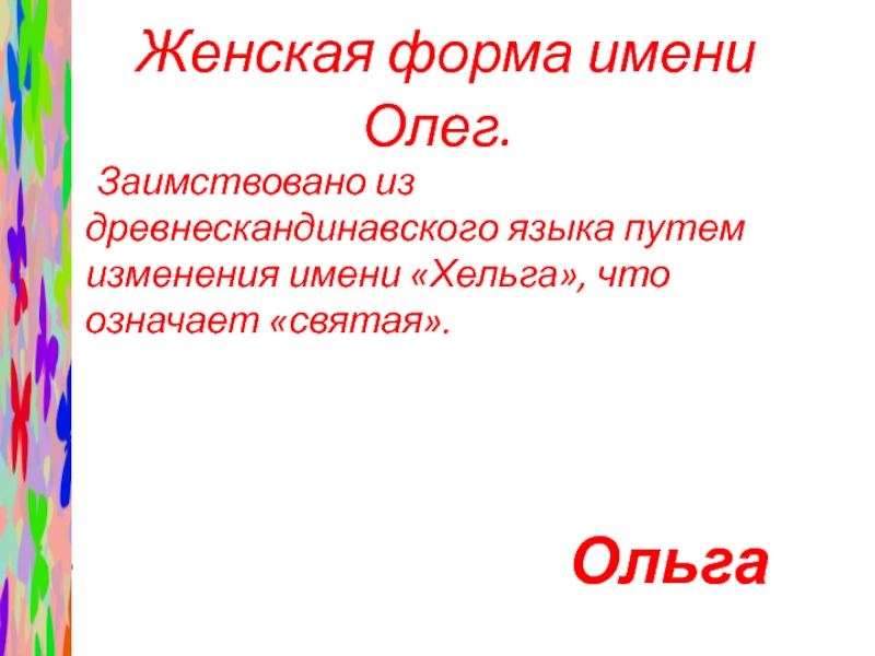 Слайд 52 Женская форма имени Олег.
