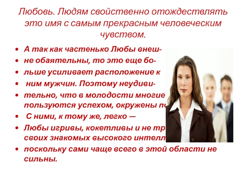 Любовь- Любонька, Любаша, Любочка. Сокращенные имена столь коротки, что нередко оказываются созвучными нескольким полным именам, и наоборот,