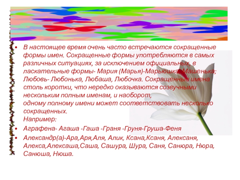 Слайд 7В настоящее время очень часто встречаются сокращенные формы имен. Сокращенные формы