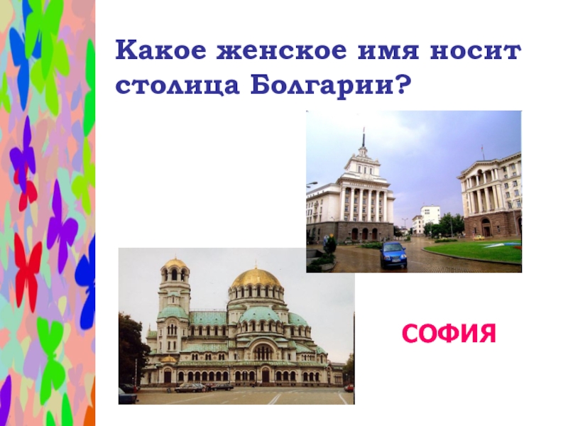 Слайд 21Какое женское имя носит столица Болгарии?