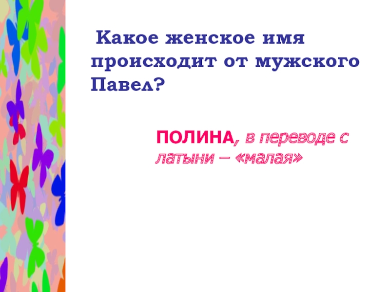 Слайд 23 Какое женское имя происходит от мужского Павел?