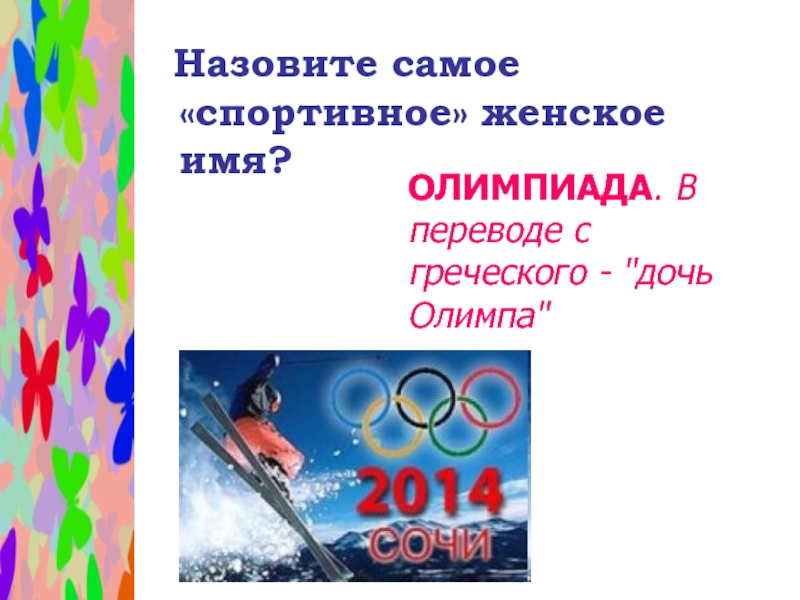 Слайд 26 Назовите самое «спортивное» женское имя?