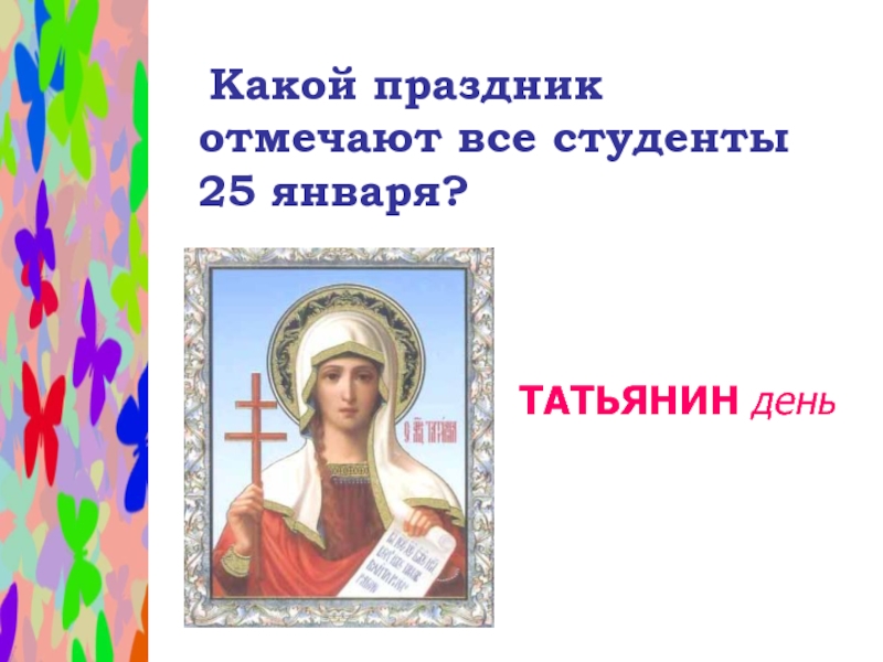 Слайд 27 Какой праздник отмечают все студенты 25 января?