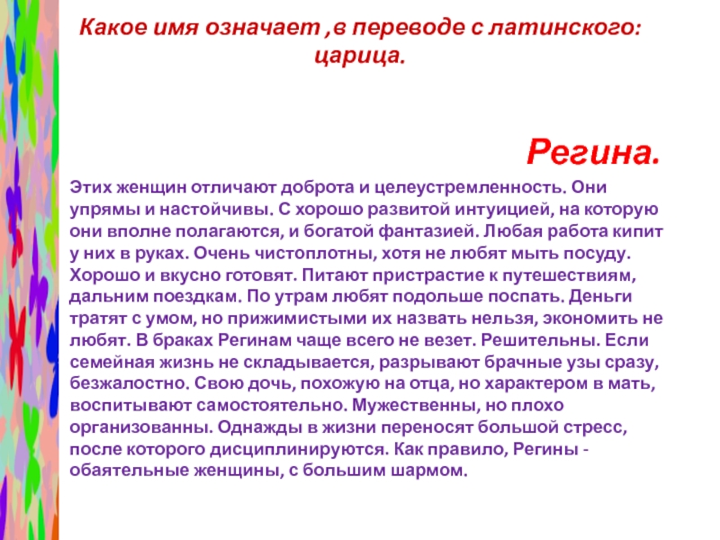 Слайд 54Какое имя означает ,в переводе с латинского: царица.