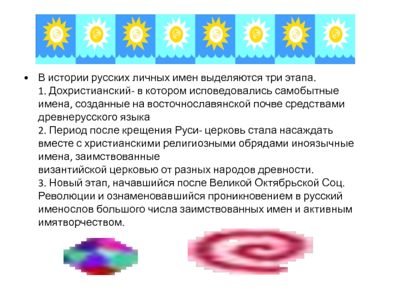 В истории русских личных имен выделяются три этапа.