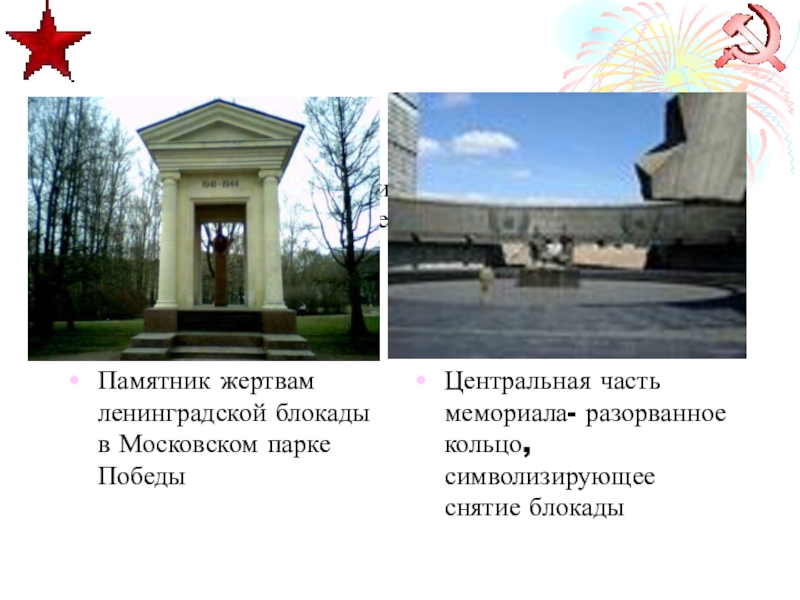 Центральная часть мемориала- разорванное кольцо, символизирующее снятие блокады