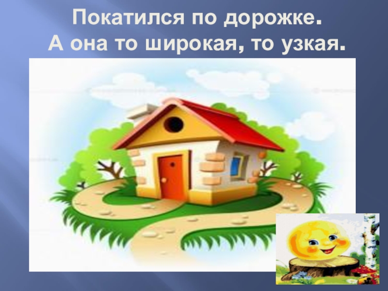 Слайд 4Покатился по дорожке. А она то широкая, то узкая.